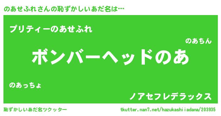 | ヘコむあだ名 | 『のあにゅー』『のあせふれ(笑)』 |