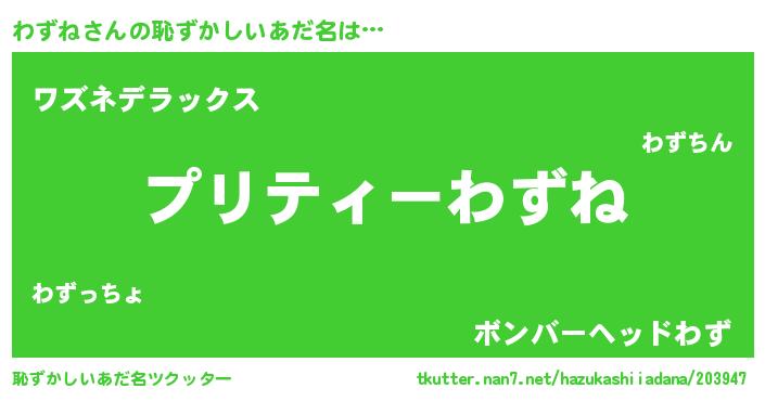 | 意味不明あだ名 | 『ペロリンわずね』『自称わずね』 |