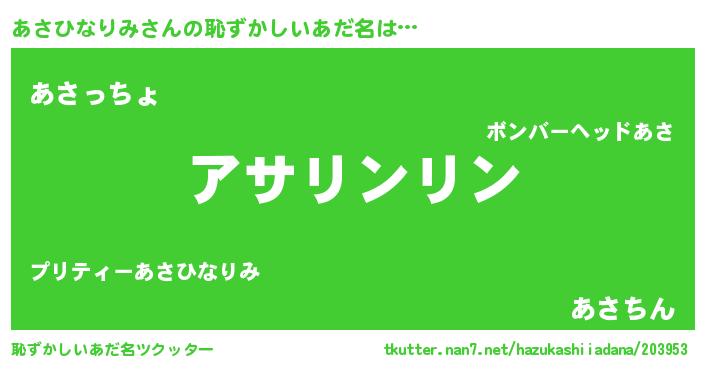 | 意味不明あだ名 | 『とにかく怪しいあさひなりみ』 |