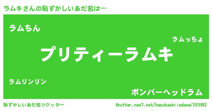 | 意味不明あだ名 | 『ペロリンラムキ』『めかぶ科ラムキ属』 |
