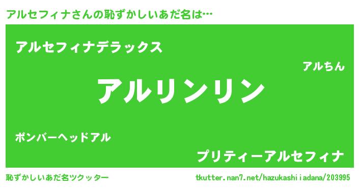 | ポケモン風あだ名 | 『ヒアルセフィナ』『アルセウス』 |