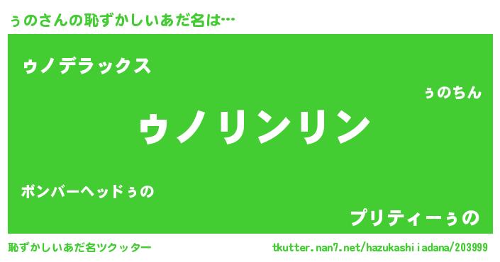 | 男性向けラノベタイトル風あだ名 | 『転生したらぅのだった件』『ぅのの憂鬱』 |