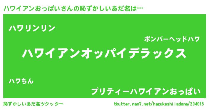 | ヒーロー風カッコイイあだ名 | 『究極戦士ハワイアンオッパイ』 |