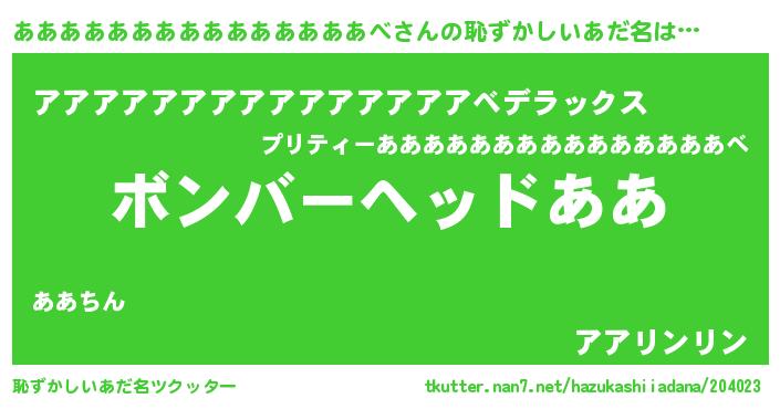 | 料理風あだ名 | 『あああああああああああああああべとほうれんそうの和風グラタン』 |