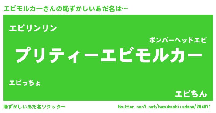 | ヒーロー風カッコイイあだ名 | 『スーパーエビモルカー』『仮面エビダー』 |