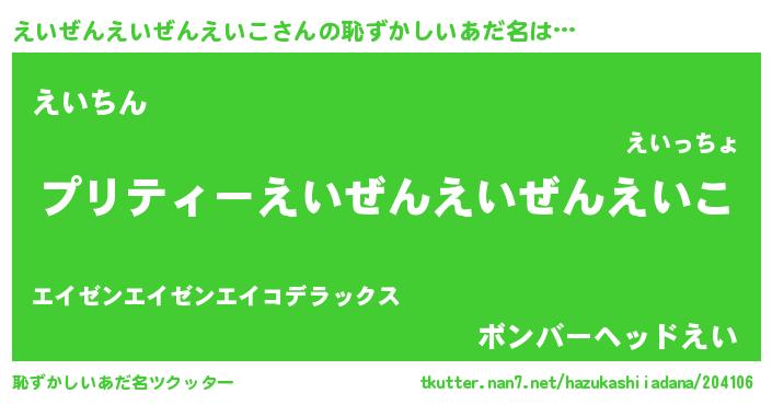 | 男性向けラノベタイトル風あだ名 | 『えいぜんえいぜんえいこの憂鬱』 |
