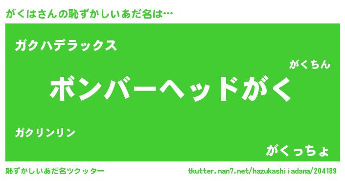 | 意味不明あだ名 | 『眠気覚ましガムがくは味』『自称がくは』 |