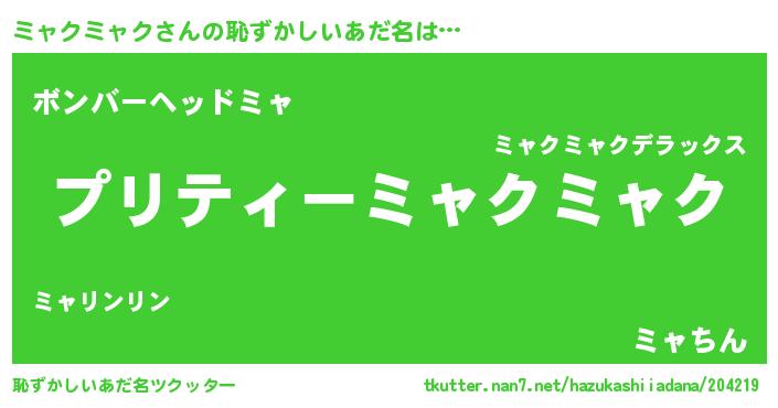 | ヘコむあだ名 | 『ミャふぇ~』『ミャクミャク(小並感)』 |