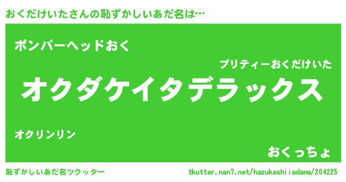 | 女子向けラノベタイトル風あだ名 | 『おくだけいたなんてお断りですっ。』 |