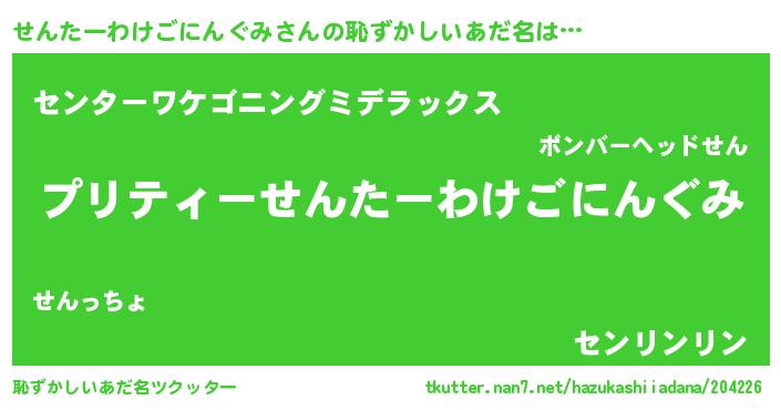 | 胡散臭い通販商品みたいなあだ名 | 『モテモテ間違いなし霊験あらたかなお札…その名も「せんたーわけごにんぐみ」』 |
