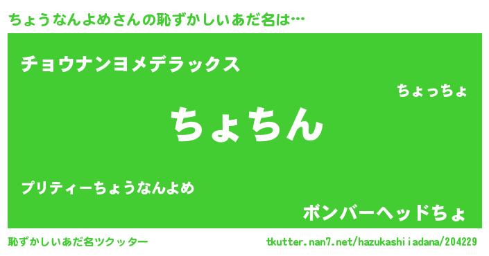 | ヘコむあだ名 | 『ちょうなんよめ(小並感)』『豆乳』 |
