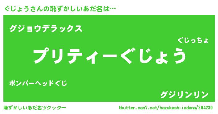 | 意味不明あだ名 | 『ペロリンぐじょう』『自称ぐじょう』 |