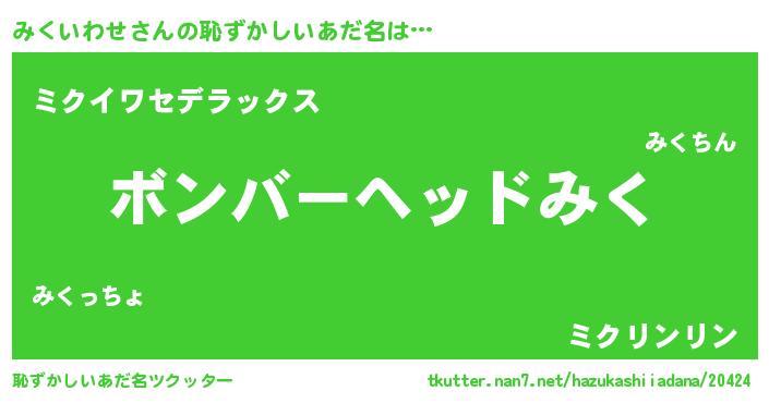 | ヒーロー風カッコイイあだ名 | 『正義の使者みくいわせ』『天弓騎士ミク』 |
