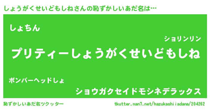 | 2回繰り返すあだ名 | 『しょしょ』『くにゃくにゃ』 |