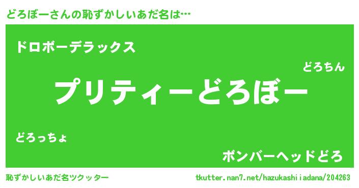 | ヘコむあだ名 | 『どろにゅー』『どろぼー(笑)』 |