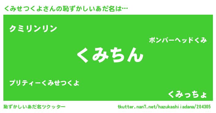 | ヘコむあだ名 | 『くみせつくよ(笑)』『くみお』 |