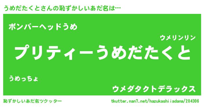 | ヒーロー風カッコイイあだ名 | 『スーパーウメダタクト』『仮面ウメダー』 |