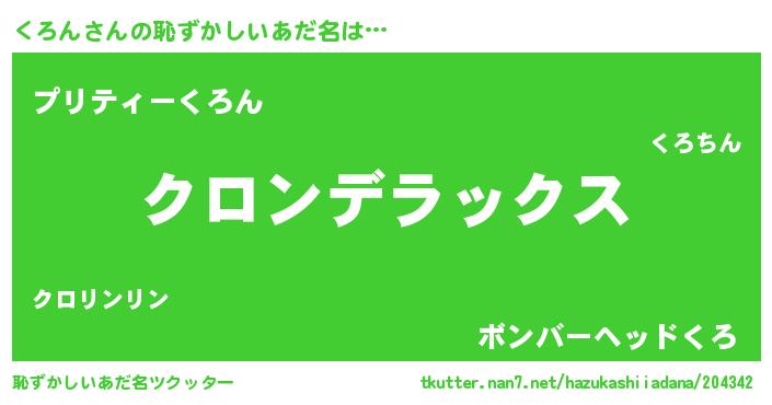 | 男性向けラノベタイトル風あだ名 | 『Re:くろんから始める異世界生活』 |