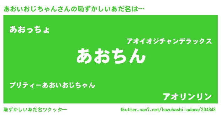 | ヒーロー風カッコイイあだ名 | 『ネオアオイオジチャン』『黄金騎士アオ』 |