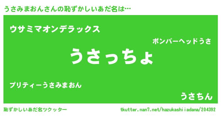 | 欧米人風あだ名 | 『アンジェラ・うさみまおん』 |