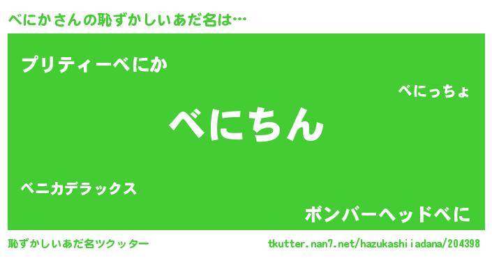 | 意味不明あだ名 | 『永久保存ベにか』『ペロリンベにか』 |