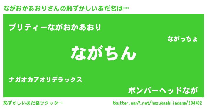 | ヘコむあだ名 | 『ながおかあおり(笑)』『ながにー』 |