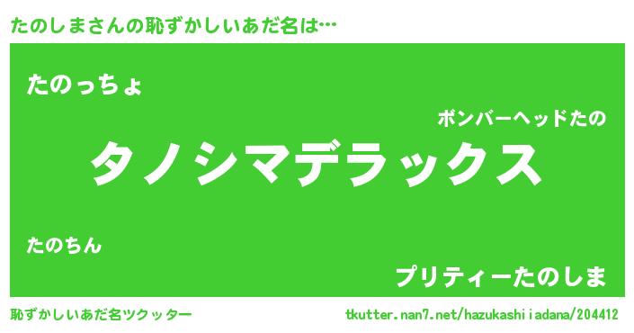 | 意味不明あだ名 | 『自称たのしま』『たのしまフォーエバー』 |