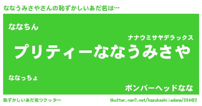 | ヒーロー風カッコイイあだ名 | 『スーパーナナウミサヤ』『仮面ナナダー』 |
