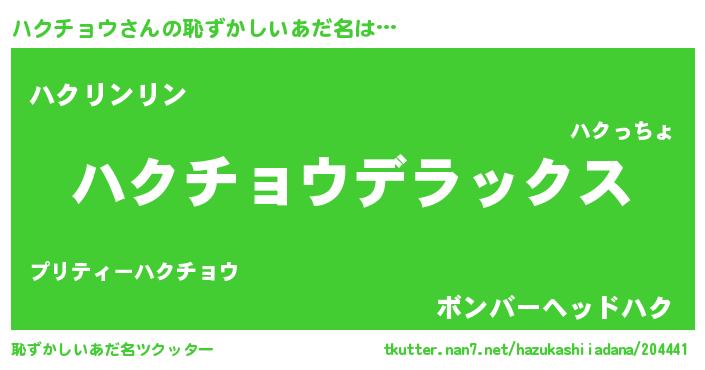 | ヘコむあだ名 | 『ハクお』『豆乳』『ハクふぇ~』 |