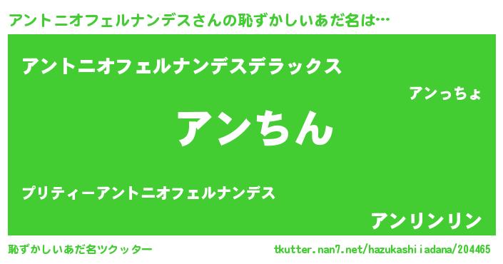 | 意味不明あだ名 | 『永久保存アントニオフェルナンデス』 |