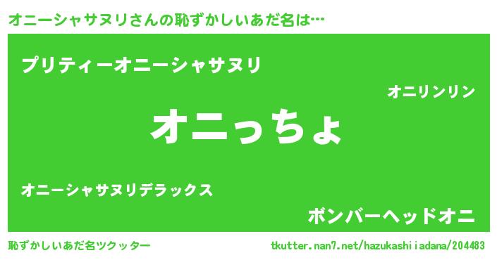| 男性向けラノベタイトル風あだ名 | 『やはりオニーシャサヌリの青春ラブコメはまちがっている 』 |