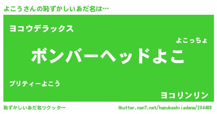 | 欧米人風あだ名 | 『ダニエルよこう』『アンジェラ・よこう』 |