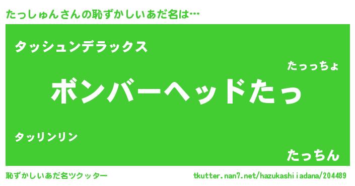 | ヒーロー風カッコイイあだ名 | 『正義の使者たっしゅん』『天弓騎士タッ』 |
