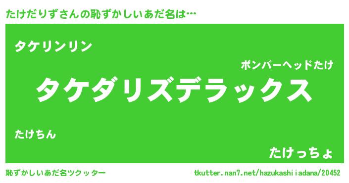 | 意味不明あだ名 | 『自称たけだりず』『ニラ科たけだりず属』 |