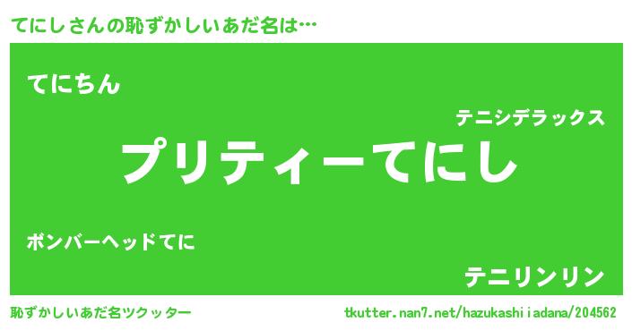 | 意味不明あだ名 | 『ペロリンてにし』『永久保存てにし』 |