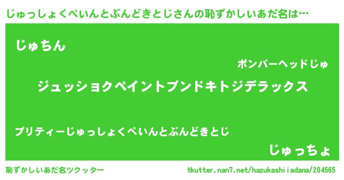 | 意味不明あだ名 | 『自称じゅっしょくぺいんとぶんどきとじ』 |