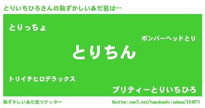 | ヘコむあだ名 | 『とりいちひろ(笑)』『酢こんぶ』 |