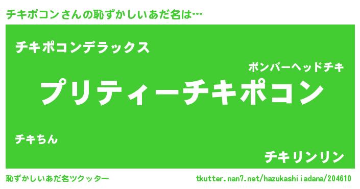 | ヒーロー風カッコイイあだ名 | 『スーパーチキポコン』『黄金騎士チキ』 |