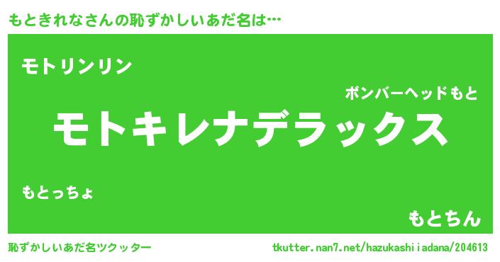 | 意味不明あだ名 | 『自称もときれな』『永久保存もときれな』 |