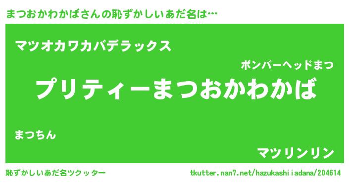 | 男性向けラノベタイトル風あだ名 | 『この素晴らしい世界にまつおかわかばを!』 |