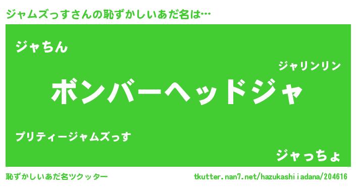 | 男性向けラノベタイトル風あだ名 | 『ジャムズっす~年齢イコール彼女いない歴の魔法使い~』 |