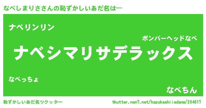 | ヘコむあだ名 | 『なべっちょ』『なべしまりさ(笑)』 |