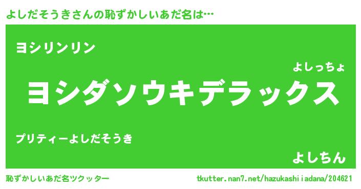 | ヘコむあだ名 | 『よしっ子』『よしだそうき(爆)』 |