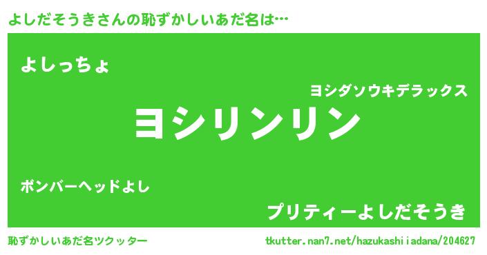 | 意味不明あだ名 | 『とにかく怪しいよしだそうき』 |