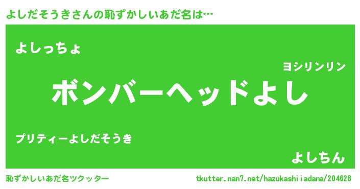 | ヒーロー風カッコイイあだ名 | 『愛の使者よしだそうき』『仮面ヨシダー』 |