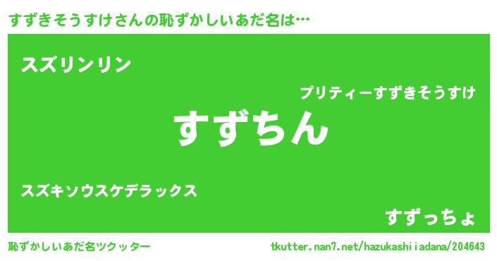 | ヘコむあだ名 | 『すずきそうすけ(小並感)』『すずを』 |