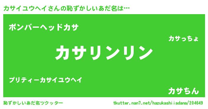 | 男性向けラノベタイトル風あだ名 | 『この素晴らしい世界にカサイユウヘイを!』 |