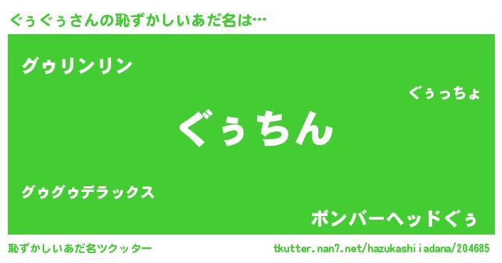 | ヘコむあだ名 | 『ぐぅぐぅ(笑)』『ぐぅお』 |