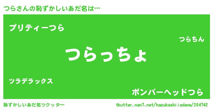 | ヘコむあだ名 | 『豆乳』『つらっふぃ~』『つら(笑)』 |