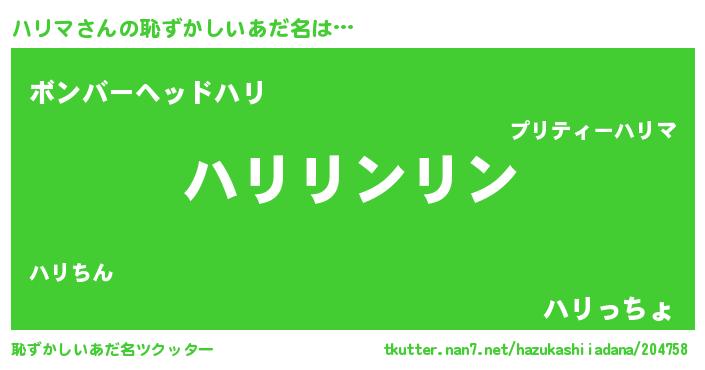 | ポケモン風あだ名 | 『ヒハリマ』『ハリキング』 |